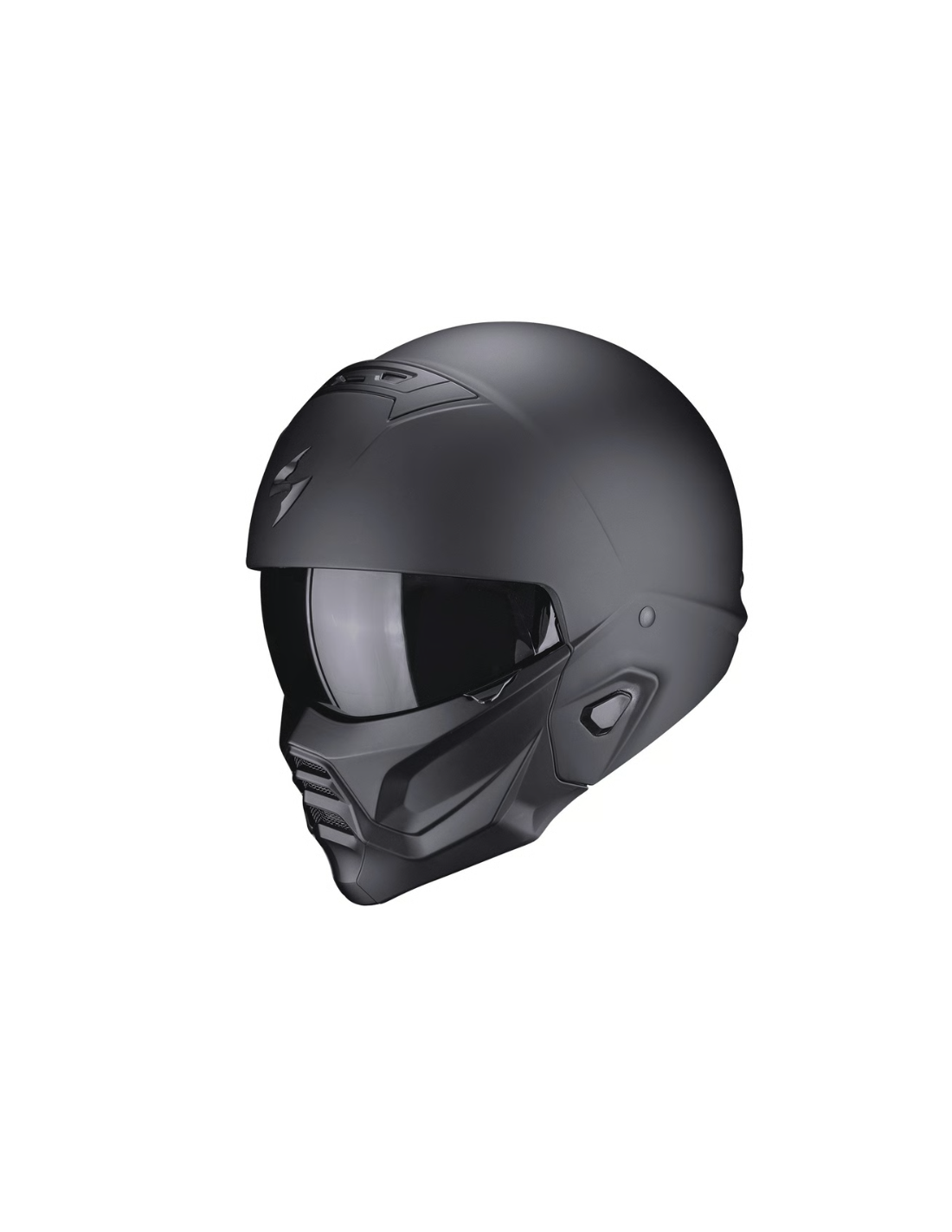 - Mentonera rígida desmontable que permite transformar el casco integral en abierto manteniendo su estilo agresivo.