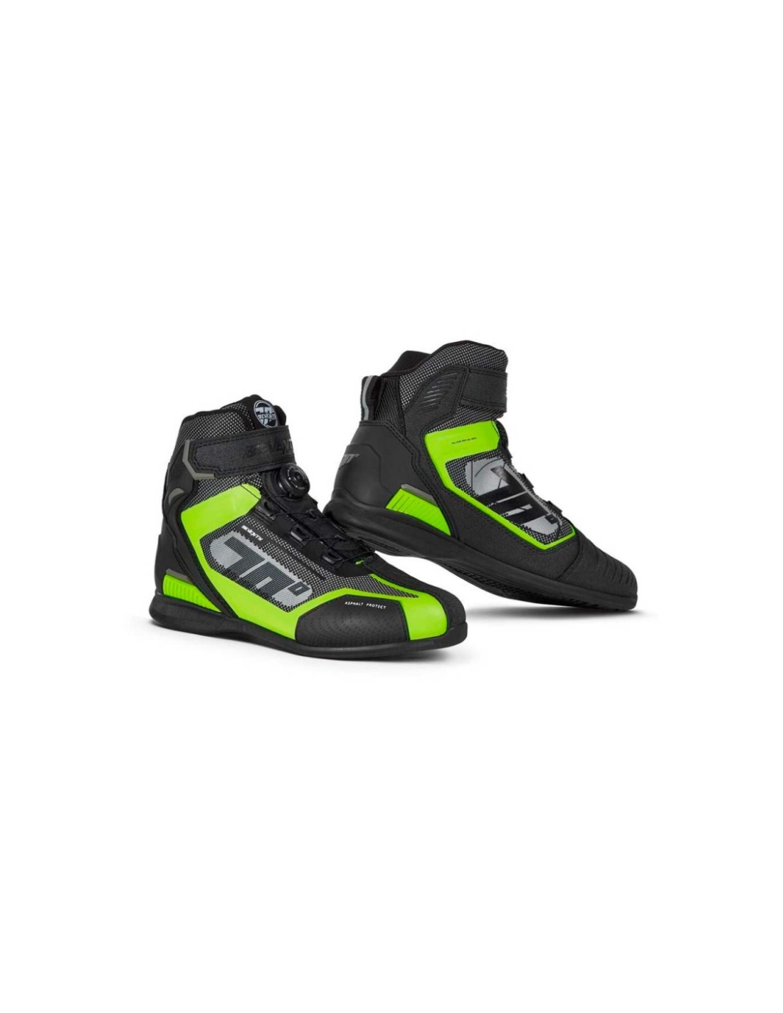 Las protecciones cubren talón, tobillo, empeine y zona de cambio de marchas, mientras que las zonas reflectantes posteriores aumentan la visibilidad en condiciones de baja luminosidad. El forro interior en malla aporta confort y transpirabilidad durante toda la jornada de conducción.